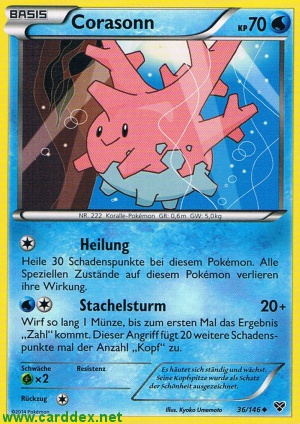 Kosten: Heile 30 Schadenspunkte bei diesem Pokémon. Alle Speziellen Zustände auf diesem Pokémon verlieren ihre Wirkung.  Schaden: