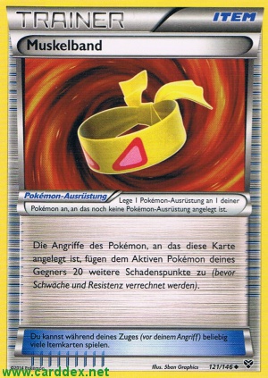 Beschreibung: Die Angriffe des Pokémon, an das diese Karte angelegt ist, fügen dem Aktiven Pokémon deines Gegners 20 weitere Schadenspunkte zu (bevor Schwäche und Resistenz verrechnet werden).