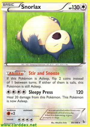 If this Pokémon is asleep, flip 2 coins instead of 1 between turns. If either of them is tails, this Pokémon ist still asleep.