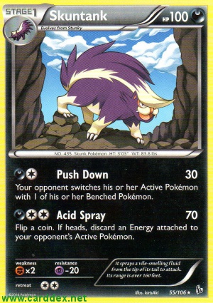 Kosten: Your opponent switches his or her Active Pokémon with 1 of his or her Benched Pokémon.  Schaden:
