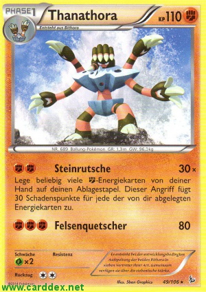 Kosten: Lege beliebig viele -Energien von deiner Hand auf deinen Ablagestapel. Dieser Angriff fügt 30 Schadenspunkte für jede der von dir abgelegten Energiekarten zu.  Schaden: