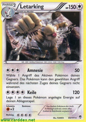 Kosten: Wähle 1 Angriff des Aktiven Pokémon deines Gegners. Das Pokémon kann den gewählten Angriff während des nächsten Zuges deines Gegners nicht einsetzen.  Schaden: