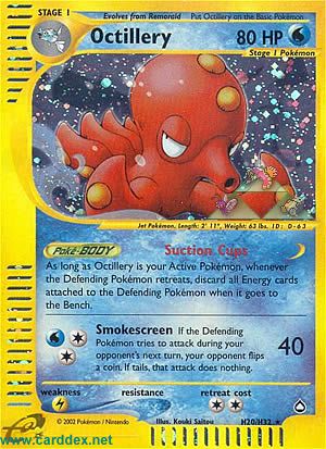 Wenn sich das Verteidigende Pokémon zurückzieht, während Octillery dein Aktives Pokémon ist, lege alle an das Verteidigende Pokémon angelegten Energiekarten auf den Ablagestapel, wenn es auf die Bank geht.
