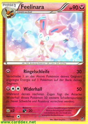 Kosten: Während deines nächsten Zuges fügt die Attacke Widerhall dieses Pokémon 50 weitere Schadenspunkte zu (bevor Schwäche und Resistenz verrechnet werden) Schaden: