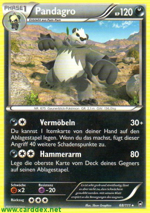 Kosten: Du kannst 1 Itemkarte von deiner Hand auf den Ablagestapel legen. Wenn du das machst, fügt dieser Angriff 40 weitere Schadenspunkte zu.  Schaden: