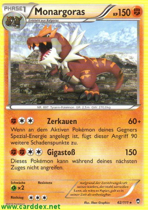 Kosten: Wenn an dem Aktiven Pokémon deines Gegners Spezial-Energie angelegt ist, fügt dieser Angriff 90 weitere Schadenspunkte zu.  Schaden: