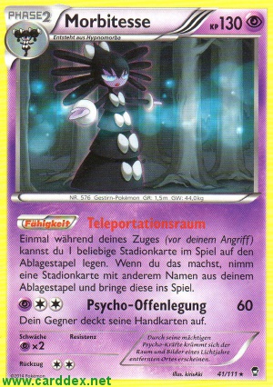 Einmal während deines Zuges (vor deinem Angriff) kannst du 1 beliebige Stadionkarte im Spiel auf den Ablagestapel legen. Wenn du das machst, nimm eine Stadionkarte mit anderem Namen aus deinem Ablagestapel und bringe dieses ins Spiel.