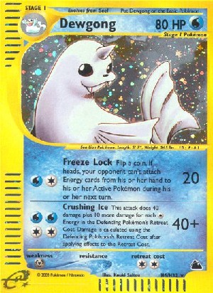 Kosten: Wirf eine Münze. Bei 'Kopf' kann dein Gegner während seines nächsten Zuges keine Energie-Karten aus seiner Hand an sein aktives Pokémon anlegen.  Schaden: