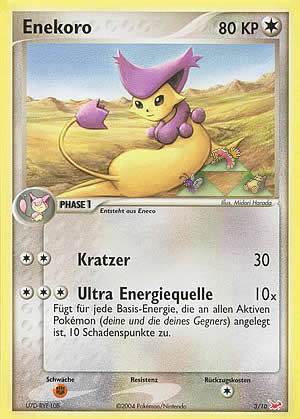 Kosten: Fügt für jede Basis-Energiekarte, die an allen Aktiven Pokemon (deine und die deines gegners) angelegt ist, 10 Schadenspunkte zu.  Schaden: