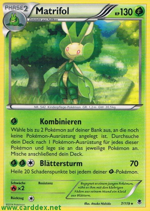 Wähle bis zu 2 Pokémon auf deiner Bank aus, an die noch keine Pokémon-Ausrüstung angelegt ist. Durchsuche dein Deck nach 1 Pokémon-Ausrüstung für jedes dieser Pokémon und lege sie an das jeweilige Pokémon an. Mische anschließend dein Deck.