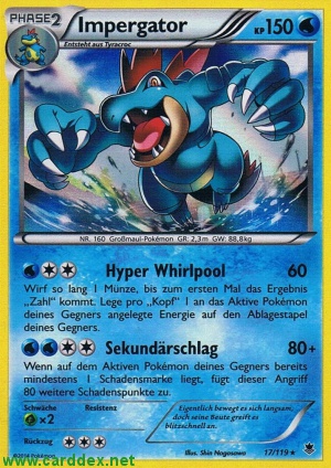 Wenn auf dem Aktiven Pokémon deines Gegners bereits mindestens 1 Schadensmarke liegt, fügt dieser Angriff 80 weitere Schadenspunkte zu.