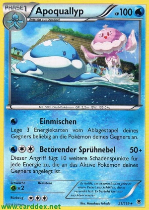 Kosten: Dieser Angriff fügt 10 weitere Schadenspunkte für jede Energie zu, die an das Aktive Pokémon deines Gegners angelegt ist.  Schaden: