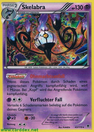 Wenn dieses Pokémon durch Schaden eines gegnerischen Angriffs kampfunfähig wird, wirf 1 Münze. Bei „Kopf“ wird das Angreifende Pokémon kampfunfähig.