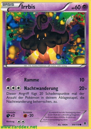 Kosten: Dieser Angriff fügt 20 Schadenspunkte mal der Anzahl der Pokémon in deinem Ablagestapel, die Nachtwanderung beherrschen, zu.  Schaden: