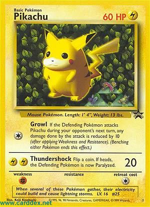 Kosten: Falls das verteidigende Pokemon Pikachu während des nächsten gegnerischen Zuges angreift, werden die Schadenspunkte dieses Angriffs um 10 Schadenspunkte reduziert (nachdem Schwäche und Resistenz abgerechnet wurden). (Wenn einer der beiden Pokemon auf die Bank geht, ist der Effekt somit beendet.)  Schaden:
