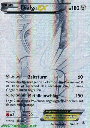Kosten: Wenn das Verteidigende Pokémon ein Pokémon-EX ist, kann es während des nächstes Zuges deines Gegners nicht angreifen.  Schaden: