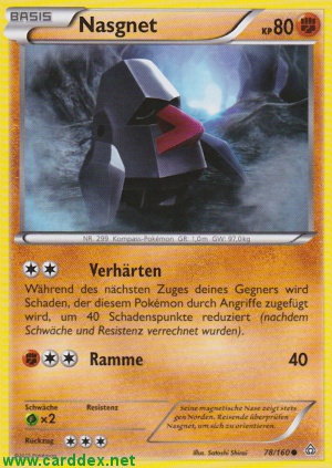 Kosten: Während des nächsten Zuges deines Gegners wird Schaden, der diesem Pokémon durch Angriffe zugefügt wird, um 40 Schadenspunkte reduziert (nachdem Schwäche und Resistenz verrechnet wurden) Schaden: