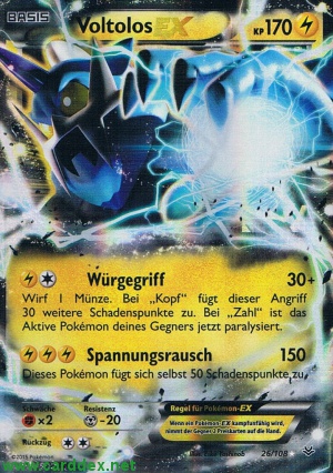 Kosten: Wirf 1 Münze. Bei „Kopf“ fügt dieser Angriff 30 weitere Schadenspunkte zu. Bei „Zahl“ ist das Aktive Pokémon deines Gegners jetzt paralysiert.  Schaden: