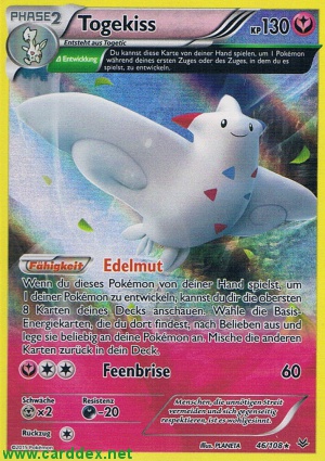 Wenn du dieses Pokémon von deiner Hand spielst, um 1 deiner Pokémon zu entwickeln, kannst du dir die obersten 8 Karten deines Decks anschauen. Wähle die Basis-Energiekarten, die du dort findest, nach Belieben aus und lege sie beliebig an deine Pokémon an. Mische die anderen Karten zurück in dein Deck.
