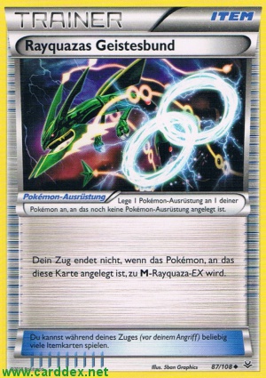 Dein Zug endet nicht, wenn das Pokémon, an das diese Karte angelegt ist, zu M-Rayquaza-EX wird.