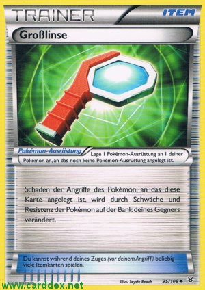 Beschreibung: Schaden der Angriffe des Pokémon, an das diese Karte angelegt ist, wird durch Schwäche und Resistenz der Pokémon auf der Bank deines Gegners verändert.