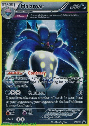 Kosten: Wenn du die gleiche Anzahl Karten auf der Hand hast wie dein Gegner, ist das Aktive Pokémon deines Gegners jetzt verwirrt.   Schaden: