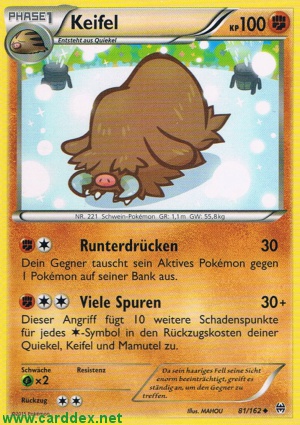 Kosten: Dieser Angriff fügt 10 weitere Schadenspunkte für jedes -Symbol in den Rückzugskosten deiner Quiekel, Keifel und Mamutel zu.   Schaden: