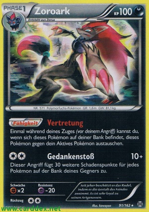 Einmal während deines Zuges (vor deinem Angriff) kannst du, wenn sich dieses Pokémon auf deiner Bank befindet, dieses Pokémon gegen dein Aktives Pokémon austauschen.
