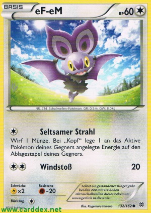 Kosten: Wirf 1 Münze. Bei „Kopf“ lege 1 an das Aktive Pokémon deines Gegners angelegte Energie auf den Ablagestapel deines Gegners.   Schaden: