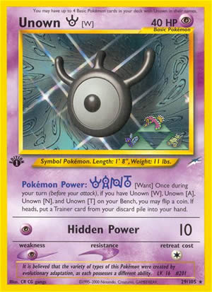 Once during your turn (before your attack), if you have Unown W, Unown A, Unown N, and Unown T on your Bench, you may flip a coin. If heads, put a Trainer card from your discard pile into your hand.