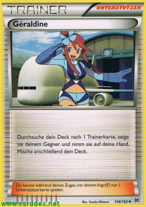 Durchsuche dein Deck nach 1 Trainerkarte, zeige sie deinem Gegner und nimm sie auf deine Hand. Mische anschließend dein Deck.