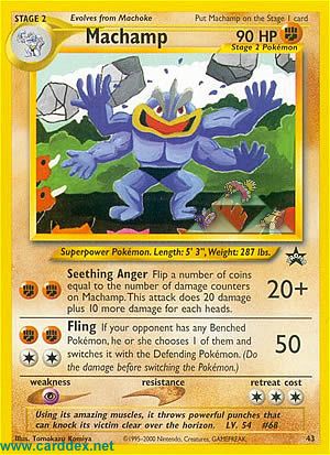 Flip a number of coins equal to the number of damage counters omn Machamp. This attack does 20 damage plus 10 more damage for each heads.