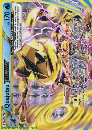 Einmal während deines Zuges (vor deinem Angriff) kannst du 1 -Energiekarte von deiner Hand auf deinen Ablagestapel legen, wenn dies dein Aktives Pokémon ist. Wenn du das machst, lege 6 Schadensmarken auf 1 Pokémon deines Gegners.