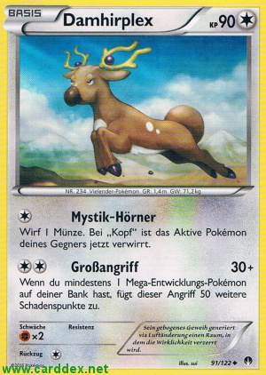 Kosten: Wenn du mindestens 1 Mega-Entwicklungs-Pokémon auf deiner Bank hast, fügt dieser Angriff 50 weitere Schadenspunkte zu.   Schaden: