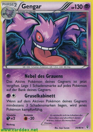 Kosten: Das Aktive Pokémon deines Gegners ist jetzt vergiftet. Lege 1 Schadensmarke auf jedes Pokémon auf der Bank deines Gegners.   Schaden: