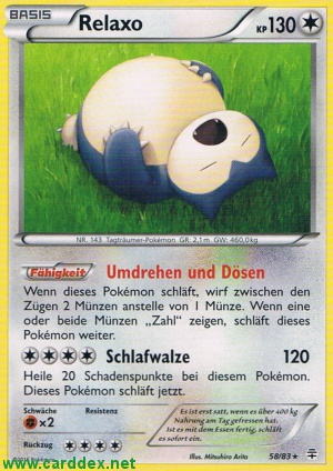 Wenn dieses Pokémon schläft, wirf zwischen den Zügen 2 Münzen anstelle von 1 Münze. Wenn eine oder beide Münzen „Zahl“ zeigen, schläft dieses Pokémon weiter.