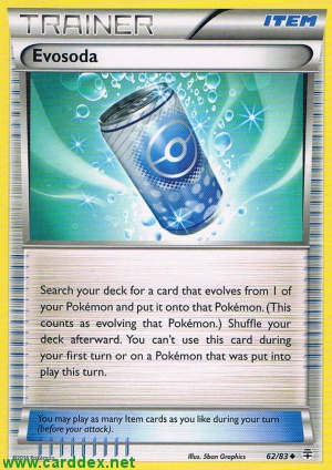 Search your deck for a card that evolves from 1 of your Pokémon and put it onto that Pokémon. (This counts as evolving that Pokémon.) Shuffle your deck afterward. You can't use this card during your first turn or on a Pokémon that was put into play this turn.