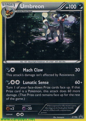 Kosten: Turn 1 of your face-down Prize cards face up. If that Prize card is a Pokémon, this attack does 60 more damage. (That Prize card remains face up for the rest of the game.)   Schaden: