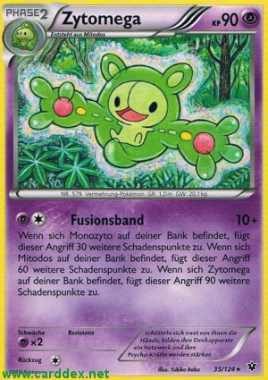 Wenn sich Monozyto auf deiner Bank befindet, fügt dieser Angriff 30 weitere Schadenspunkte zu. Wenn sich Mitodos auf deiner Bank befindet, fügt dieser Angriff 60 weitere Schadenspunkte zu. Wenn sich Zytomega auf deiner Bank befindet, fügt dieser Angriff 90 weitere Schadenspunkte zu.