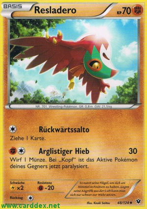 Kosten: Wirf 1 Münze. Bei „Kopf“ ist das Aktive Pokémon deines Gegners jetzt paralysiert.   Schaden: