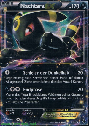 Kosten: Wenn das Mega-Entwicklungs-Pokémon deines Gegners durch Schaden dieses Angriffs kampfunfähig wird, nimm 2 zusätzliche Preiskarten.   Schaden: