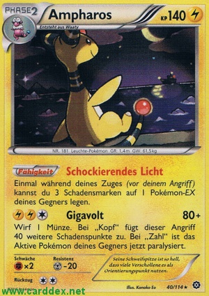 Kosten: Wirf 1 Münze. Bei „Kopf“ fügt dieser Angriff 40 weitere Schadenspunkte zu. Bei „Zahl“ ist das Aktive Pokémon deines Gegners jetzt paralysiert.   Schaden: