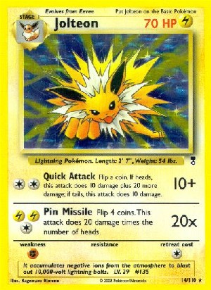 Kosten: Wirf eine Münze. Bei "Kopf" fügt dieser Angriff 10 Schadenspunkte plus 20 weitere Schadenspunkte zu; bei "Zahl" fügt dieser Angriff 10 Schaden zu.  Schaden: