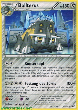 Wenn dieses Pokémon während des nächsten Zuges deines Gegners durch einen Angriff Schaden erhält (auch wenn dieses Pokémon dadurch kampfunfähig wird), lege der Höhe des zugefügten Schadens entsprechend Schadensmarken auf das Angreifende Pokémon.