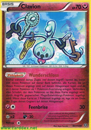 | Einmal während deines Zuges (vor deinem Angriff) kannst du, wenn sich dieses Pokémon auf deiner Bank befindet, alle Karten, die an dieses Pokémon angelegt sind, auf deinen Ablagestapel legen und es an 1 deiner Pokémon als 1 Pokémon-Ausrüstung anlegen. Verhindere allen Schaden, der dem Pokémon, an das diese Karte angelegt wird, durch Angriffe gegnerischer Mega-Entwicklungs-Pokémon zugefügt wird. Wenn diese Karte an 1 Pokémon angelegt ist, lege sie am Ende des Zuges deines Gegners auf deinen Ablagestapel.