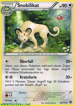 Kosten: Wenn sich dieses Pokémon während dieses Zuges aus Mauzi entwickelt hat, fügt dieser Angriff 30 weitere Schadenspunkte zu.   Schaden: