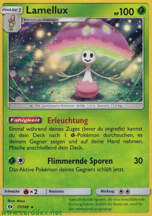 Einmal während deines Zuges (bevor du angreifst) kannst du dein Deck nach 1 -Pokémon durchsuchen, es deinem Gegner zeigen und auf deine Hand nehmen. Mische anschließend dein Deck.