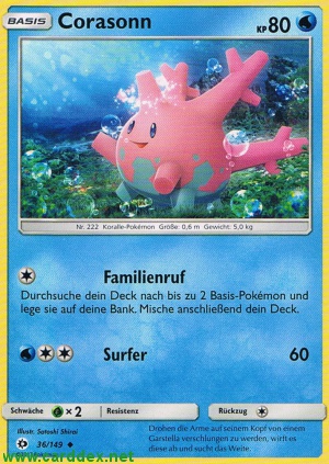 Kosten: Durchsuche dein Deck nach bis zu 2 Basis-Pokémon und lege sie auf deine Bank. Mische anschließend dein Deck.   Schaden: