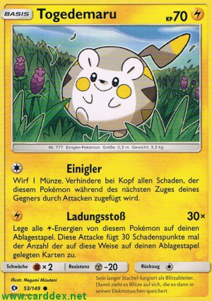 Lege alle -Energien von diesem Pokémon auf deinen Ablagestapel. Diese Attacke fügt 30 Schadenspunkte mal der Anzahl der auf diese Weise auf deinen Ablagestapel gelegten Karten zu.