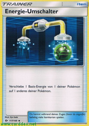 Verschiebe 1 Basis-Energie von 1 deiner Pokémon auf 1 anderes deiner Pokémon.